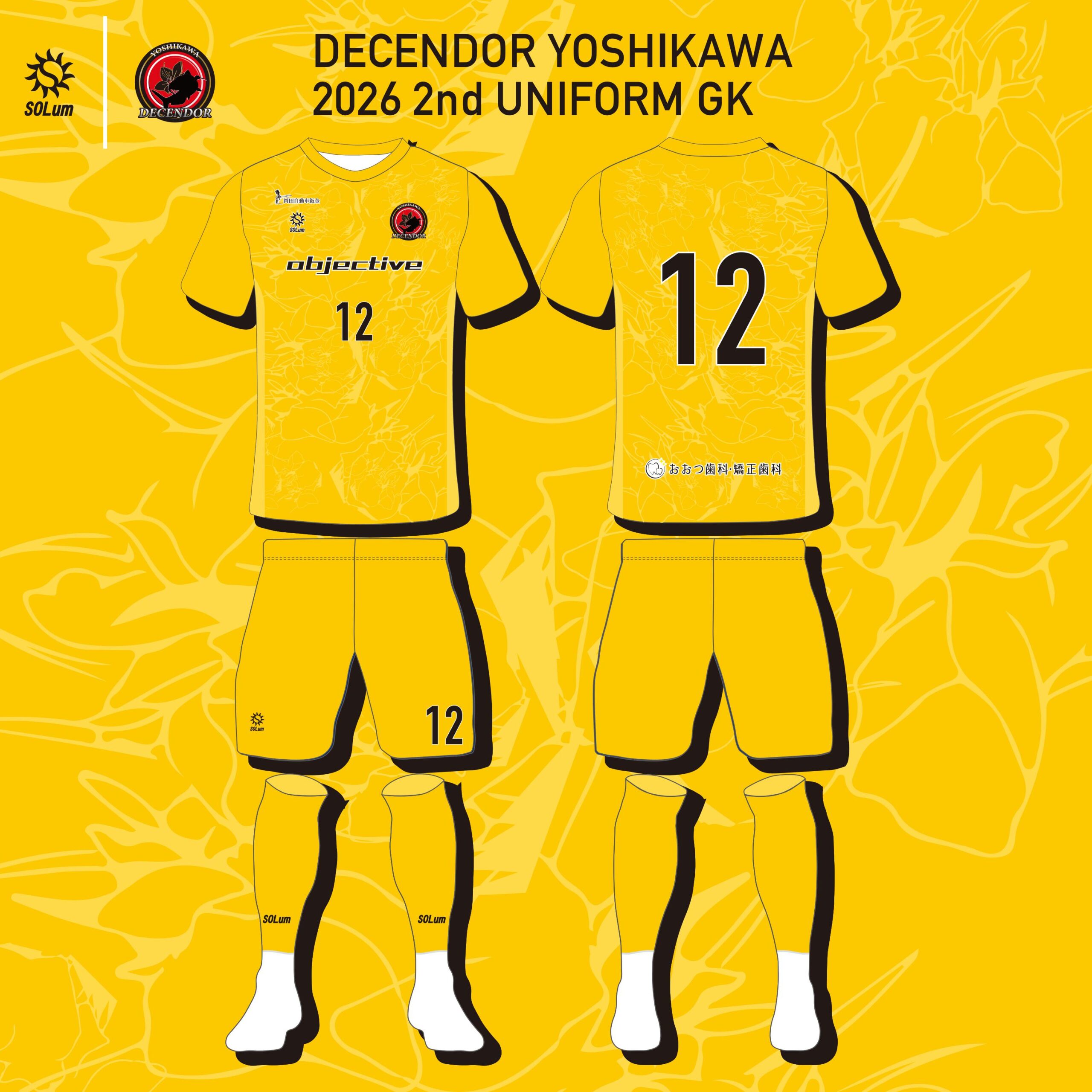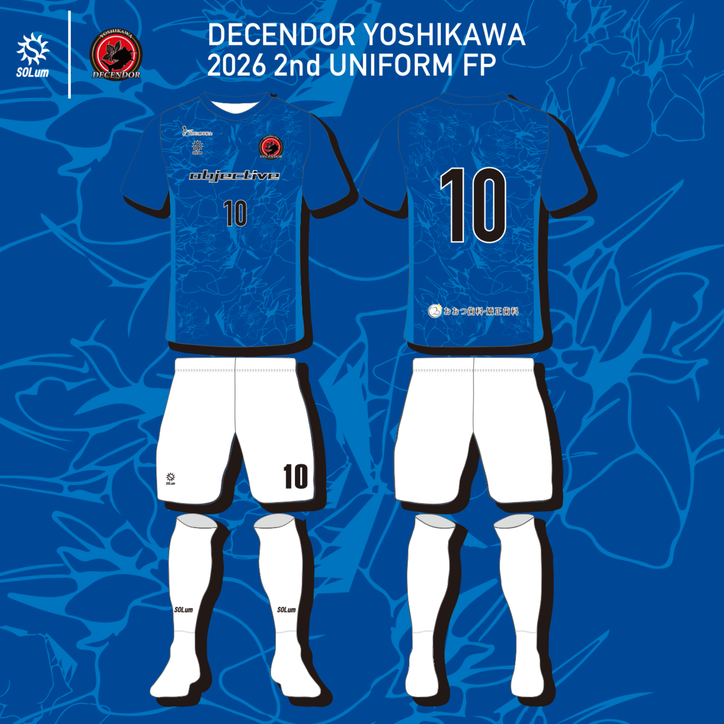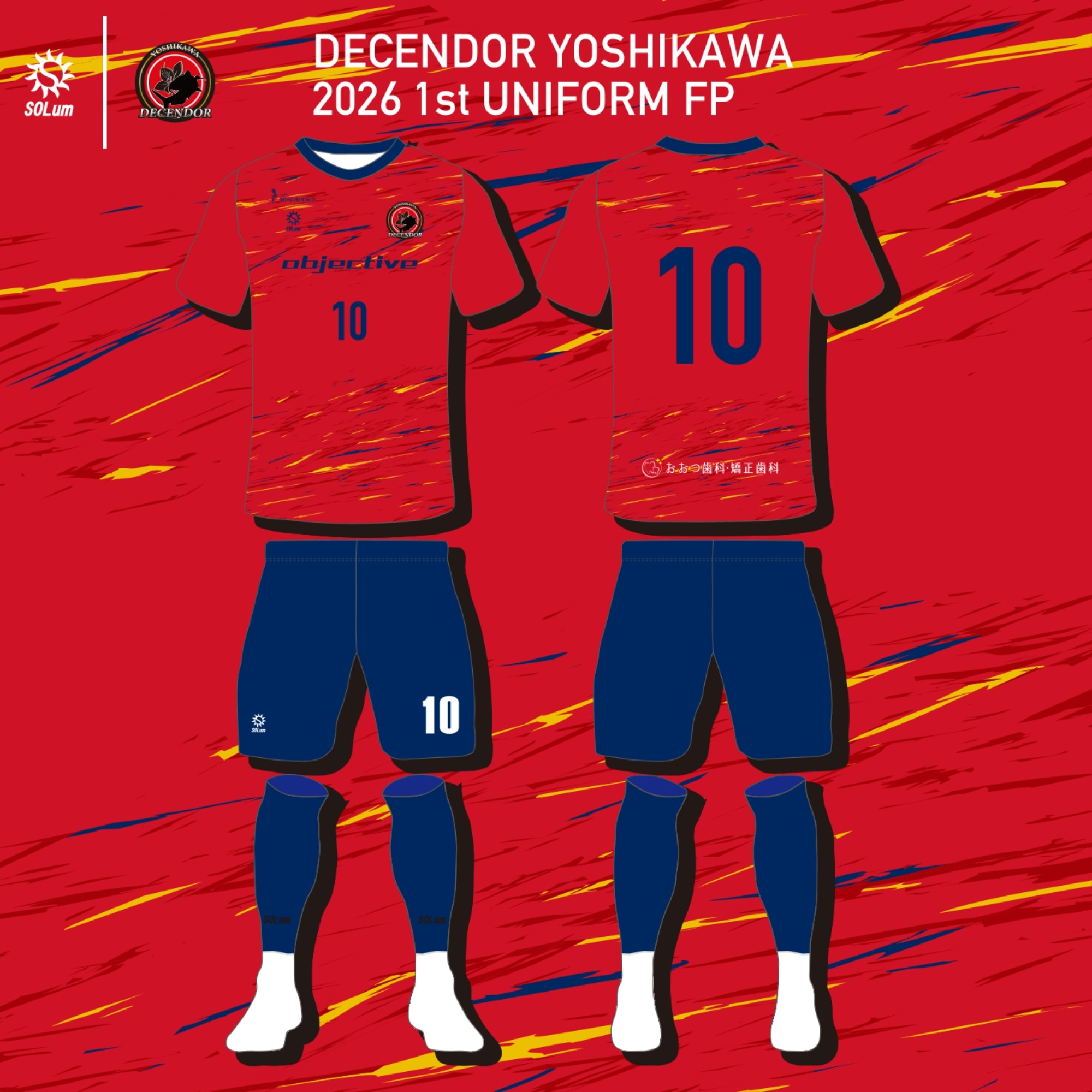 ディセンドーラ吉川では、2026-27シーズンのユニフォームデザインが決定いたしましたのでお知らせいたします。 ▪︎ユニフォーム(胸部) 株式会社objective ▪︎ユニフォーム(右鎖骨) 有限会社岡田自動車鈑金 ▪︎ユニフォーム(背中下部) 医療法⼈社団 碧志会 おおつ歯科・矯正歯科